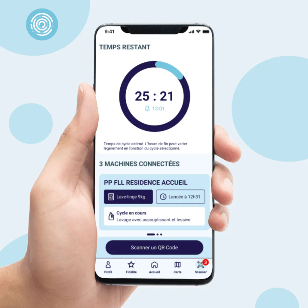 Retrouvez tous vos services en quelques clics : localisez les laveries près de chez vous, vérifiez la disponibilité des machines, suivez votre cycle en temps réel, cumulez des points fidélité à chaque lavage/séchage et convertissez-les en codes promos !